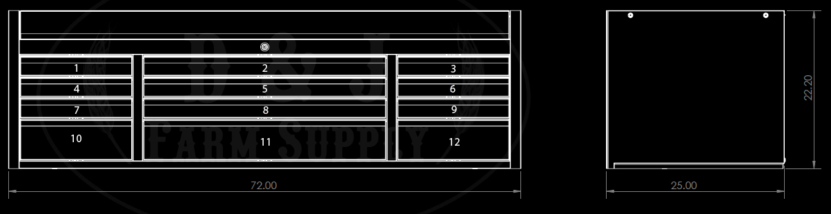 Extreme Tools® RX Series 72"" 12-Drawer Top Chests are the latest addition to the Extreme Tools® family of professional tool boxes. These top chests incorporate the key features you want like our patented Quick Release, self-latching drawer pulls, heavy duty steel drawers which use ball bearing slides, full-width polished aluminum drawer pulls and chrome trim. Each drawer can hold up to 100-200* lbs of your tools and equipment. The huge open till area under the lid makes it easy to see what is in that space and gives you room to store larger objects.