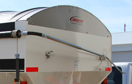 The SRT-2® grain tarp allows you to fill from either side as it is stored neatly along the box. The risk of damaging the tarp is greatly reduced with the side storage feature. With no tie-downs and being able to operate it from the ground, it only takes seconds to open or close the grain tarp. The telescoping crank handle stores in such a way as it will not interfere with doors or grain gates.